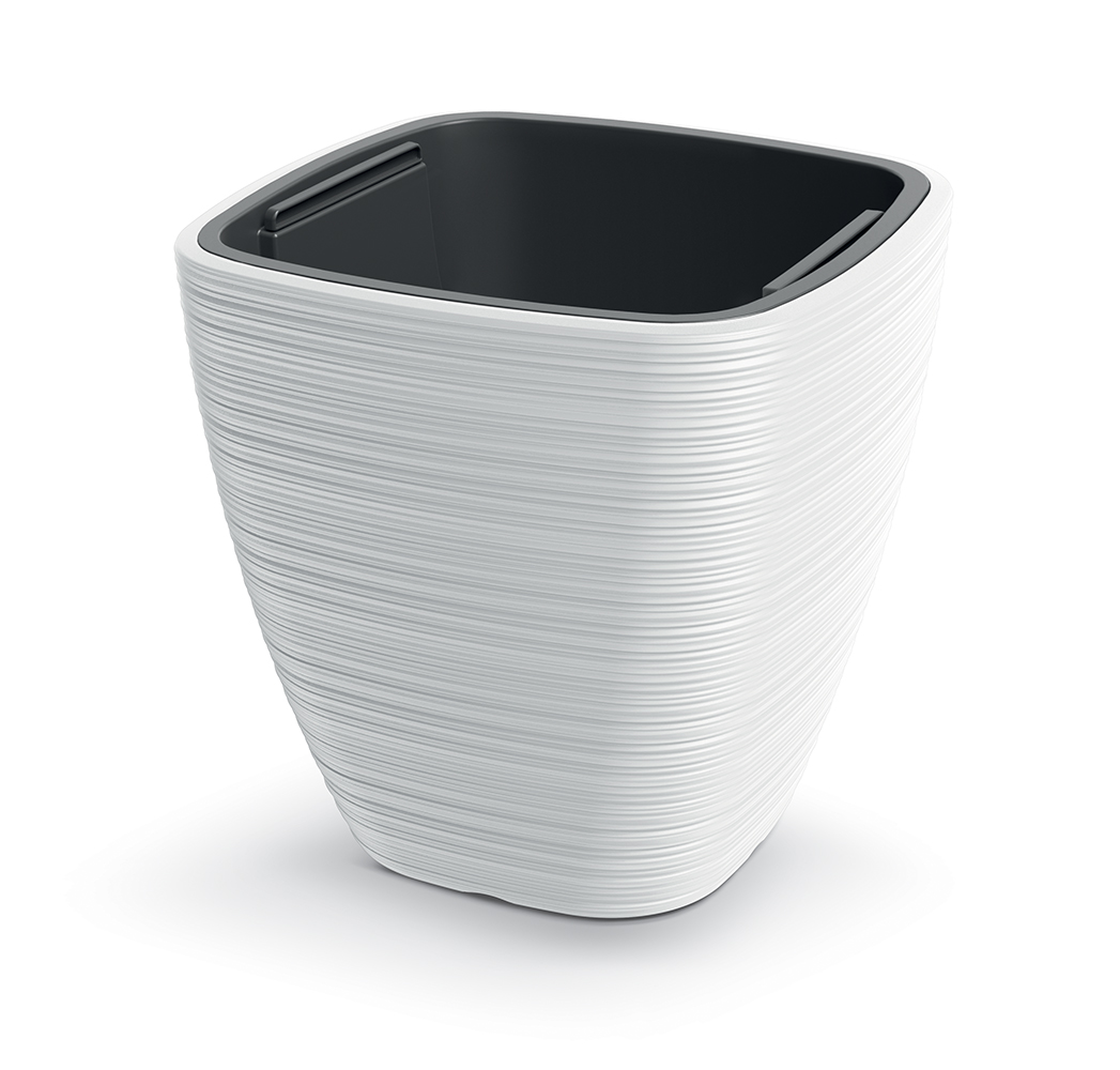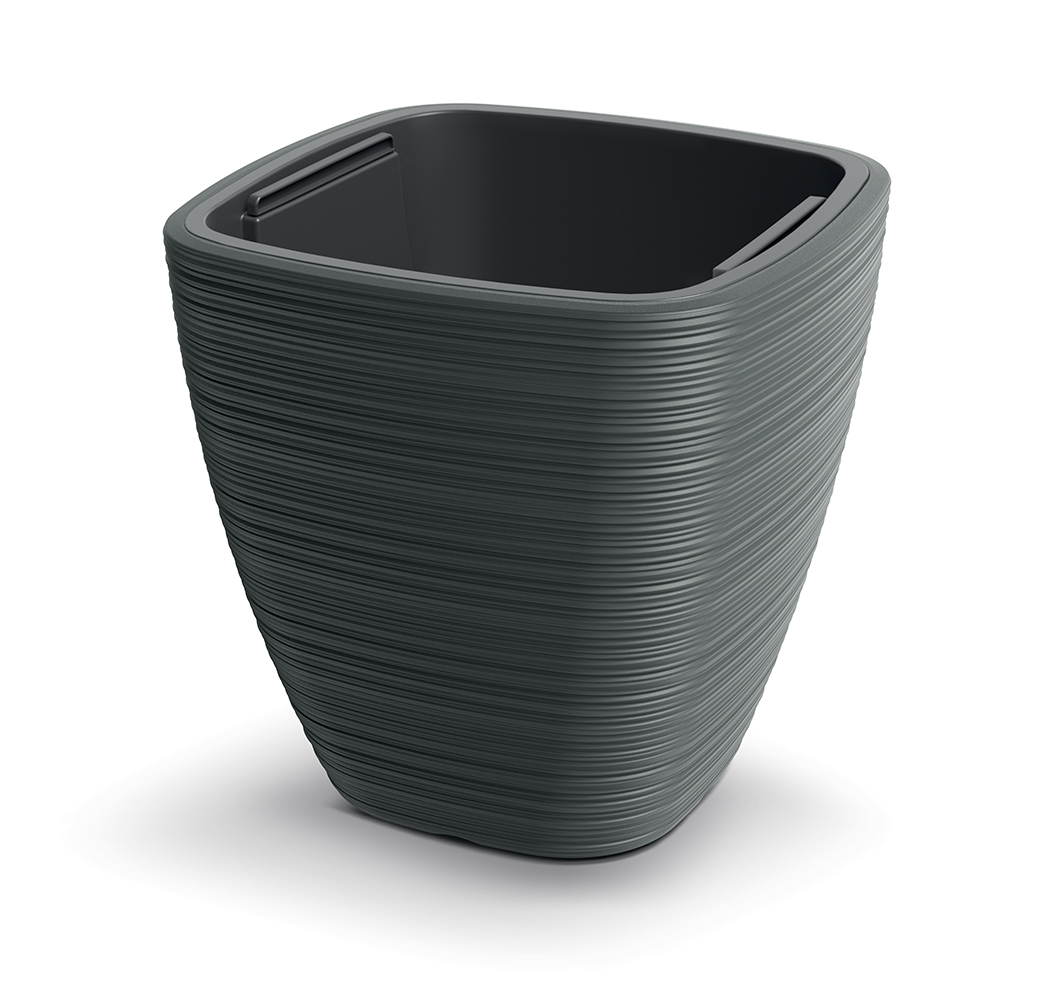 Горизонтальні рифлення надають цим горщикам виразності та стилю, створюючи цікаву структуру, яка привертає погляд. Їх сучасна форма ідеально підходить як для елегантних, мінімалістичних інтер’єрів, так і для більш класичних композицій. Квадратний рифлений горщик оснащений практичним вкладишем, який полегшує посадку рослин, покращує систему поливу і дозволяє легко пересаджувати рослини. Завдяки вкладишу також можна краще контролювати кількість води в горщику, що позитивно впливає на здоров’я рослин. Вона поєднує функціональність з естетикою, створюючи ідеальне рішення для любителів красивих і доглянутих рослин.