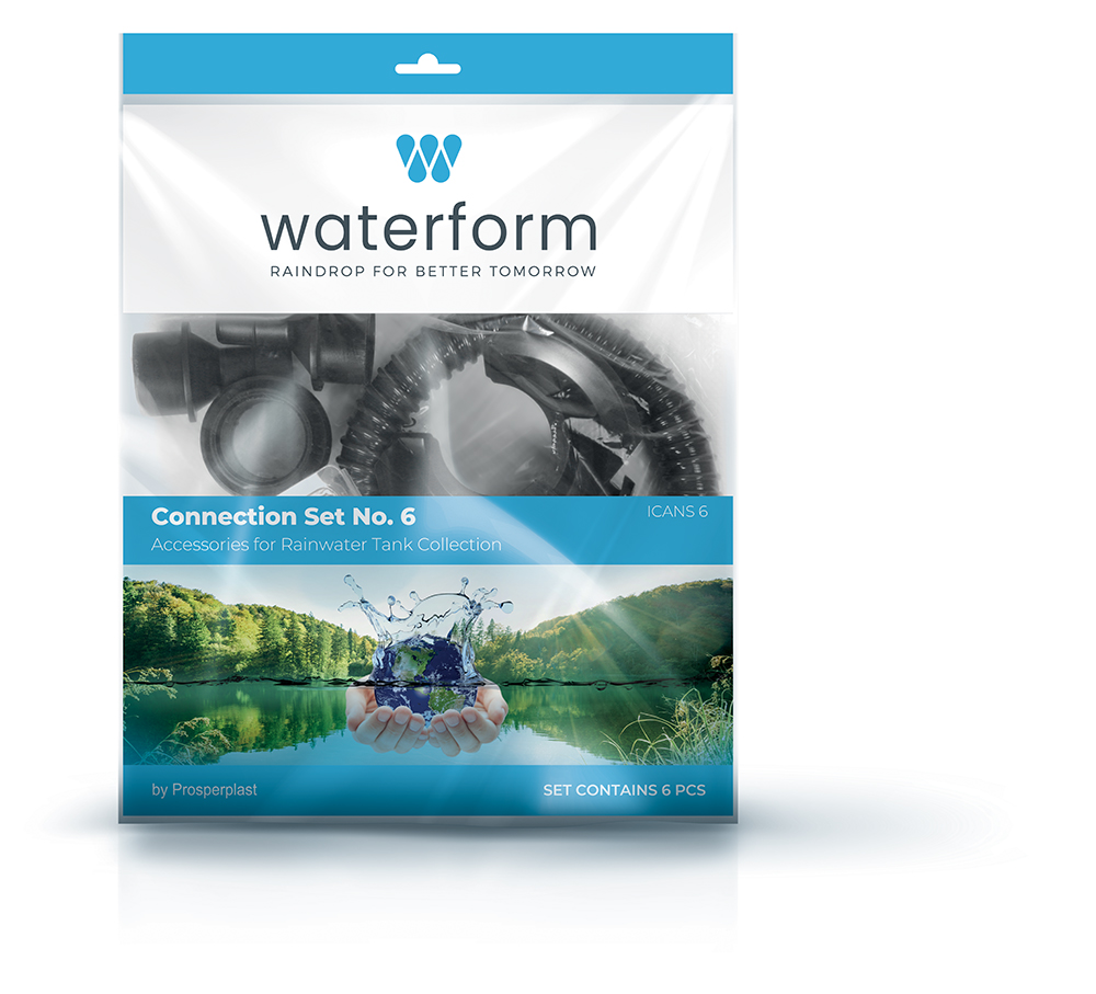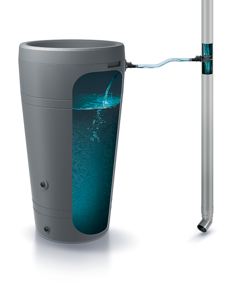 Система з’єднання, призначена для збору та перекачування води до резервуара для дощової води. Комплект складається з 6 елементів: кільцевої пилки; редуктора; садового шланга; та водозбірника. Дуже універсальна, її проста конструкція забезпечує швидке встановлення та легкий доступ без серйозних пошкоджень жолоба. *Кільцевий пилок, що входить до комплекту, призначений лише для пластикових жолобів.