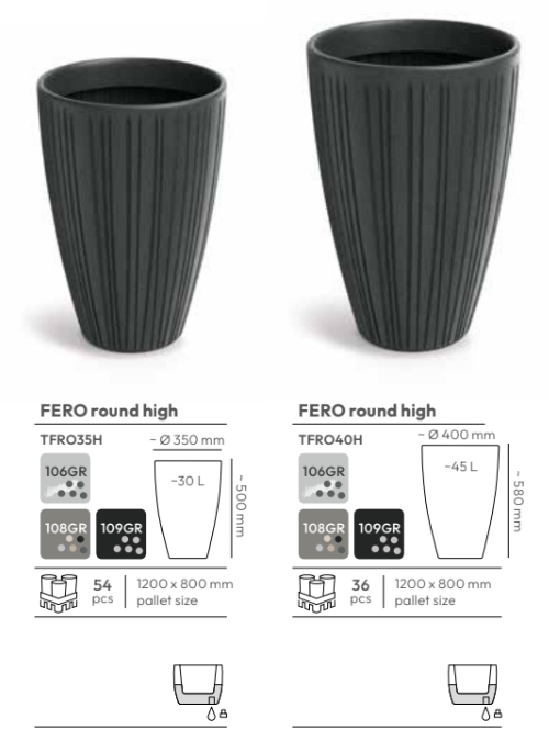 Кашпо FERO round high TFRO35H-40H