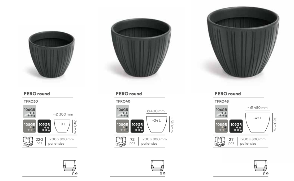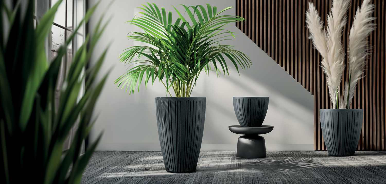 Серія горщиків FERO – це витончене поєднання простих форм з ритмічними ребрами та текстурою на зовнішніх стінках – характерними рисами цієї колекції. Просторова форма та гра світла підкреслюють деталі, що натякають як на стародавню, так і на сучасну архітектуру. Таким чином, колекція FERO поєднує традиції з сучасністю.