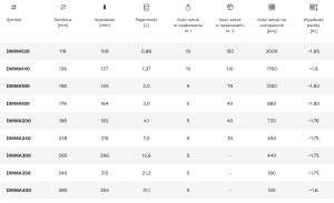 | Діаметр (мм) | 119, 138, 158, 178, 198, 238, 295, 340, 385 |