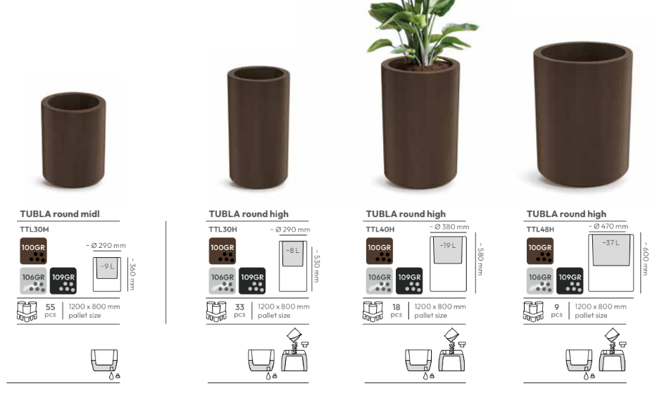 TUBLA перетворює простоту на скульптурне вираження. Її струнка циліндрична форма приховує внутрішню структуру, яка тихо підтримує рослину з продуманою точністю.