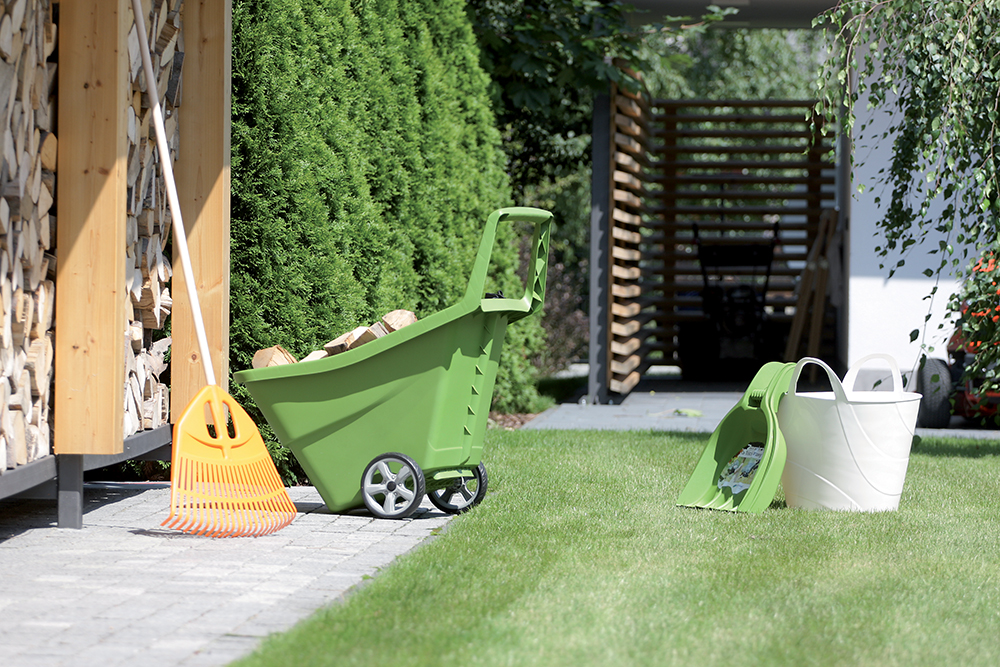 Опціонально, штовхаючи або тягнучи тачку, ми можемо зручно транспортувати садові відходи, дрібні інструменти на робоче місце, сніг або дрова для каміна прямо під двері.