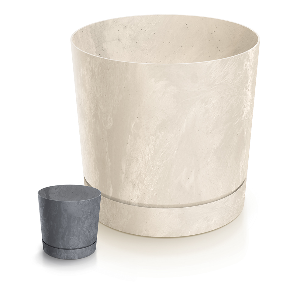 Tubo P Beton Effect – це традиційний циліндричний кашпо із сучасним оздобленням під бетон, що надає йому індустріального дизайнерського вигляду, ідеально підходить для сучасних інтер’єрів. Його оздоблення ледь помітно нагадує архітектурний бетон, а стримані кольори та пропорції надають йому елегантного вигляду. Він постачається з підставкою, що прикріплюється, того ж кольору, що й кашпо.